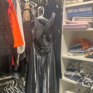 NWT La Femme 27151 Satin Prom Dress Platinum Size 4