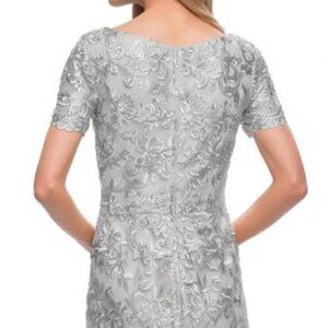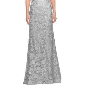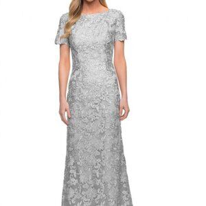 NWT La Femme 29161SC Lace/Appliques Mother of the Bride Dress Silver Size 4