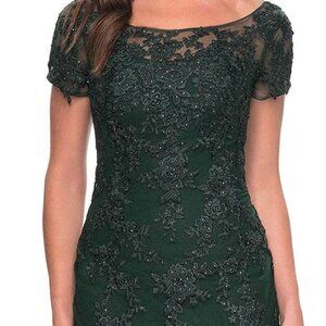 NWT La Femme 29792SC Tulle Mother of the Bride Dress Dark Emerald Size 8