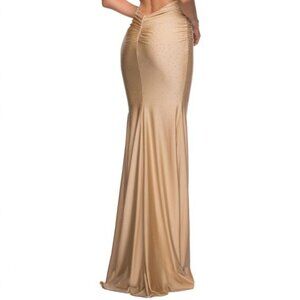 NWT La Femme 30340SC Beaded Jersey Prom Dress Light Gold Size 8
