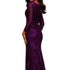 NWT La Femme 32491 Lace Mother of the Bride Dress Eggplant Size 14