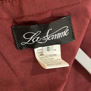 NWT La Femme Sz 8 Chiffon maxi Gown special occasion prom Garnet color — zips up back — fully lined — full to floor length — flowy
