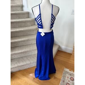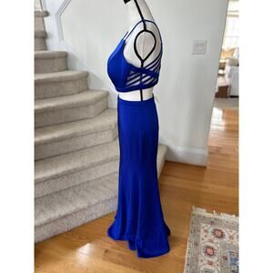 NWT La Femme Cobalt Royal Blue Two Piece Crop Top & Skirt Prom Gown
