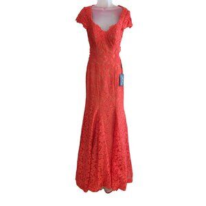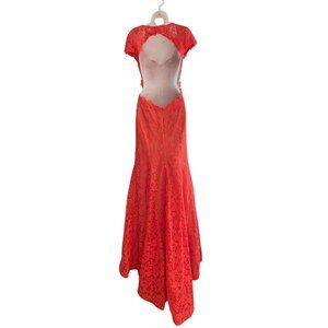 NWT La Femme Coral Lace Backless Formal Evening Gown Size 6 Coral