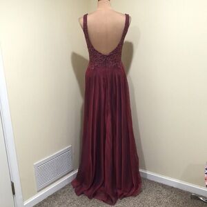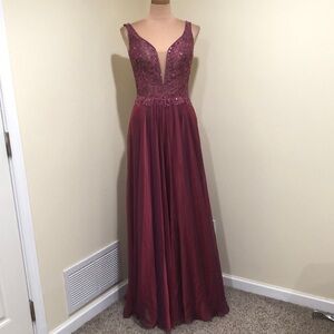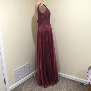 NWT La Femme Gown Formal Maxi Dress Size 6 Burgundy Floral Lace Style 25513