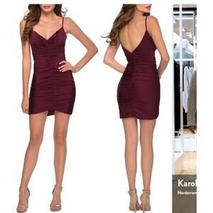 NWT La Femme Ruched Mini Dress in Dark Berry size 2