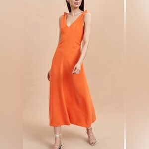 NWT La Ligne Sleeveless V-Neck Midi Dress in Bright Orange – Size 4