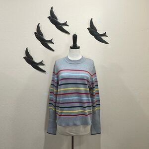 This Striped Crewneck Sweater from La Ligne × Target makes a perfect addition to your cool-weather wardrobe. Made from a soft fabric blend, this crewneck sweater is designed with red, yellow, light blue, purple & navy stripes on a gray background. A standard fit, ribbed cuffs and a below-waist length finish off the stylish look.