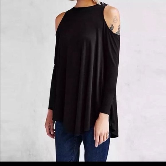 Relaxed fit oversized fit with side slits along with the cold shoulder detail
