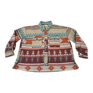 NWT La Miel Jacket Womens Large Southwest Aztec Navajo Blanket Shacket Raw Hem