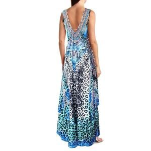 NWT La Moda Rhinestone Embellished Hi-low Ruffle Hem Maxi Swim Dress Cover-up