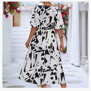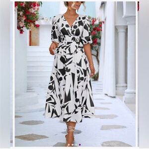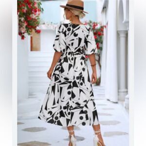 NWT La Mode Black and Ivory Surplice Dress with bubble Sleeves