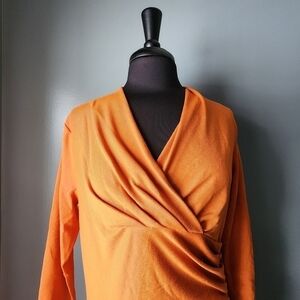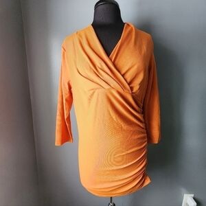 *NWT* La Mode Orange Ruched Faux Wrap Top