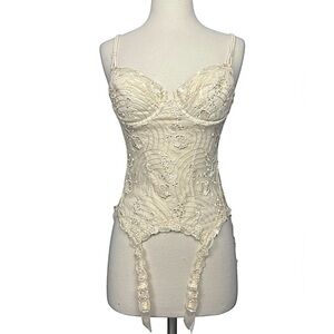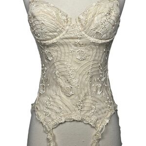 *RARE NWT La Perla Cream Lace Bustier Corset With Attached Garter Straps Size 36B