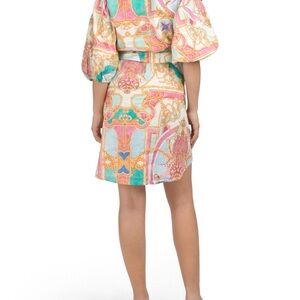 NWT La Ragazze Made In Italy Linen Blend Baroque Print Mini Dress Size M