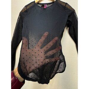 NWT La Senza Womens Long Sleeve Sheer Bodysuit Size S Black Swiss Dots Summer
