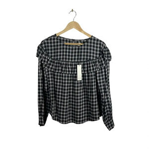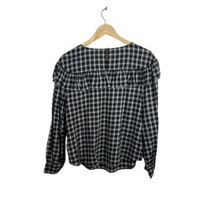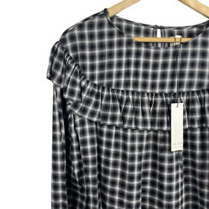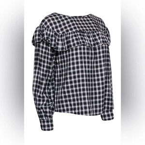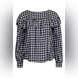 NWT La Vie Rebecca Taylor Plaid Ruffle Blouse in Black/White Size M