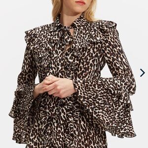 NWT La Double J Long Fancy Dress Leopard in Double Georgette Small