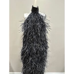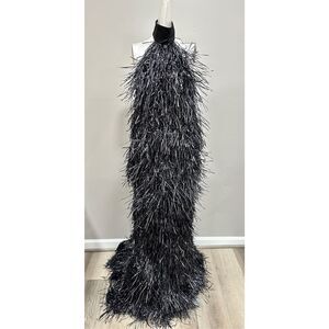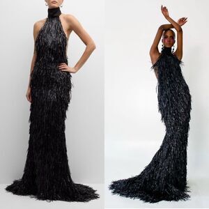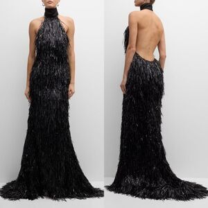 NWT LaQuan Smith Mock-Neck Halter Fringe Gown Size L $4375