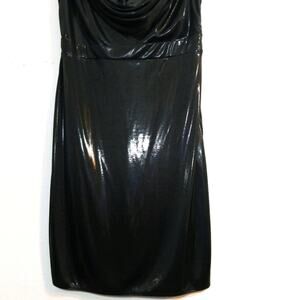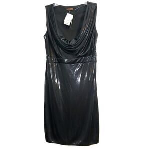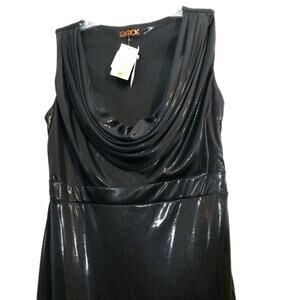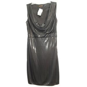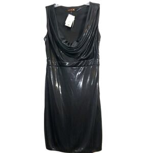 New with tag LaRok sexy liquid metallic black cowl neck dress.