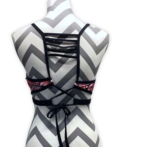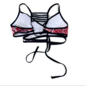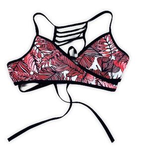 La Vie en Rose Aqua Wrap Bikini Top with a ladder back.