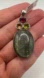 This is a stunning combination of stones in a Bali sterling silver pendant. The labradorite is about 25x18mm and it is accented by an oval cut garnet, round cut citrine, and round cut peridot. The peridot is measuring about 5mm. The citrine is about 7mm, and the oval cut garnet is 5x7mm.