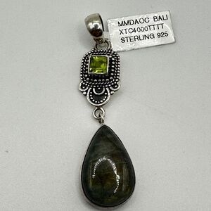 NWT Labradorite cabochon and faceted peridot pendant in Bali sterling silver!
