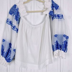 NWT Lace Top & Short Set Embroidered 100% Cotton White Blue Size S