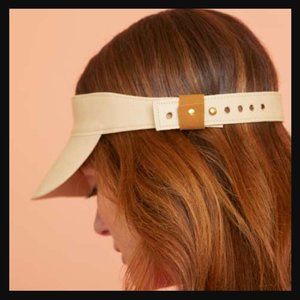 NWT Lack of Color adjustable visor in Beige. Designed in Australia. Vegan Leather. Brass snap, fawn interior.
