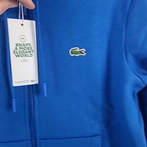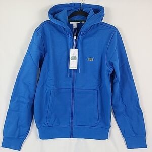 NWT Lacoste Men's Zip-Up Organic Cotton Fleece Hoodie Blue Sz S