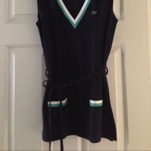 NWT Lacoste Vneck top with belt & 2 mini front pocket...this is a long shirt but not quite tunic..so cute. Dress up, or dress down. Plain or accessorized. Your choice is unlimited.👏