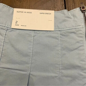 NWT Ladies American Eagle super Hi-Rise Super Stretch pleated skirt. Lt blue. 2 or 26. Retail $50. Back zipper and button closure. Cotton/lyocell/spandex blend. The tiniest bit of stretch. Smoke free home.