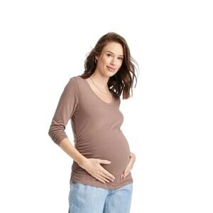 NWT Ladies Ingrid & Isabel Brown Scoop Neck Maternity T-Shirt - XS
