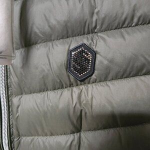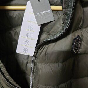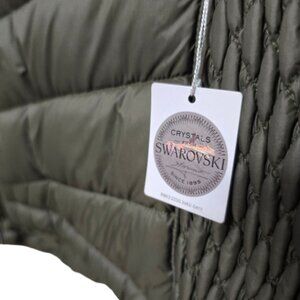 New with Tags. Ladies size XL. Swarovski Limited Edition Vest with Samshield Swarovski Logo on chest. Color is deep Green. Water repellant, down proof, breathable. Please note color in person may vary slightly from photos. Filling is 90% down with 10% feather.