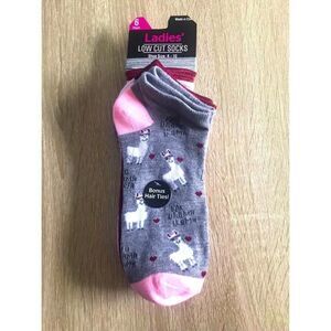 NWT … Ladies Low Cut “6 Pack” LLAMA Sock Set With BONUS Hair Ties