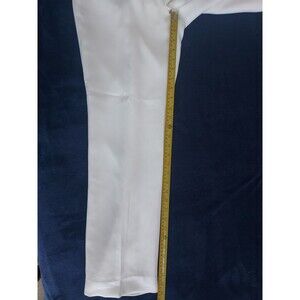 This is a pair of New with Tags (NWT) women's dress pants by Rena Rowan in ivory color, size 10. The pants feature a flat front, 10.75" high rise, and straight leg design with a 31-inch inseam. Made of polyester with a tone on tone fabric, they are fully lined for added comfort. The pants have a zip closure and are machine washable, making them easy to care for. Perfect for formal or professional occasions, these stylish and well-crafted pants are a versatile addition to any wardrobe.