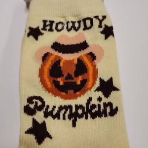 NWT ladies pale yellow crew type socks with a cowboy pumpkin on it. Size 9-11 cuts shoe size 5-10