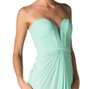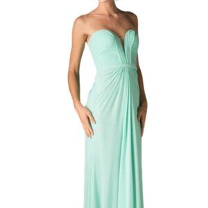 Prepare to turn heads at your special event with this Ladivine 601 creation. Exuding a classy femininity, the dress displays an appealing strapless design and a plunging sweetheart neckline with an illusion v-inset in the bust. The pleated detailing on the bodice adds elegance and beautiful texture. Wraps with a thin waistband, the gathered skirt softly cascades to the floor length hem and carves a sheath silhouette. You will be the envy of everyone in this unbeatable Ladivine 601 dress.