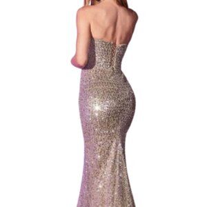 Product Details: Fitted, Strapless, Sequins and Beads Embellishments, Floor Length, Mid-Open Back, Lace Up