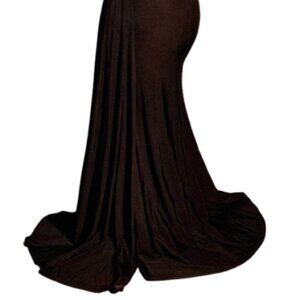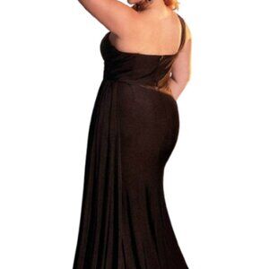 Product Details: One Shoulder Thick Strap, Draped Hips, Sleeveless, Fitted, Floor Length, Mid-Open Back, Back Zipper, Sweep Train