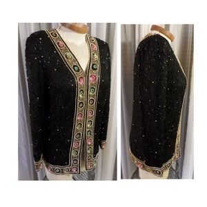 NWT Lady Small Silk Blouse Top Jacket Bead Sequin