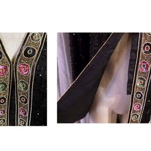 This is a new (with retail tags) Laurence Kazar original vintage blouse - or you can wear it as an elegant jacket if you prefer. It is vintage, but it has been stored carefully and is indeed brand new, with tags. It is heavily beaded and sequinned.