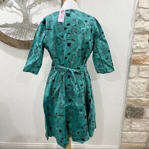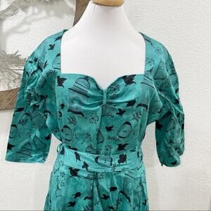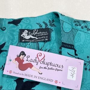 NWT Lady Voluptuous Retro Maria Dress Birdcage Print Teal Black 22 24