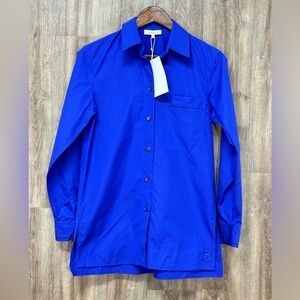 NWT Lafayette 148 Bright Blue Lace Detail Button Up