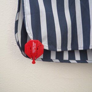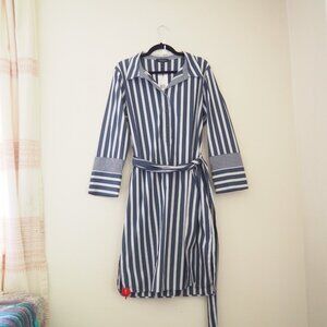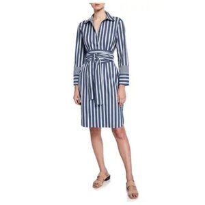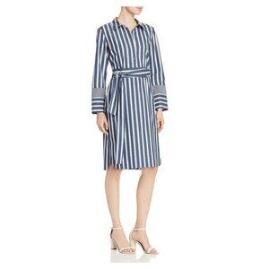 NWT Lafayette 148 Fabiola Twilight Dungaree Blue Stripe Long Sleeve Belted Dress
