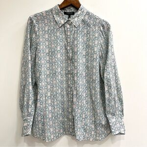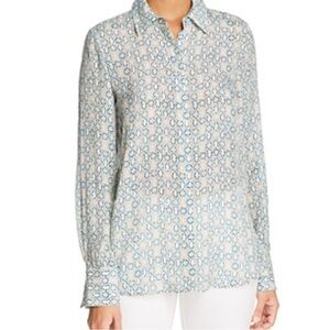NWT Lafayette 148 Scottie Decorative Crepe Viscose Silk Blouse Button Up Large