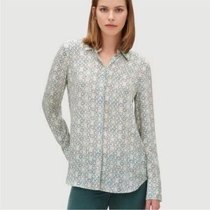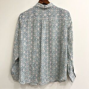 Lafayette 148 New York Scottie in Peppermint Multi Print Blouse Viscose Silk Blend Top Size Large. This is so gorgeous!! Love the vintage inspired print. Beautiful colors of mint and blush pink. Amazing quality