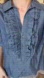 NWT Lafayette 148 Short Sleeves Ruffle Front Button Down Blouse Shirt Gray XL