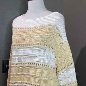 NWT Lafayette 148 New York Striped Sweater open stitch lurex sequin silk yarn