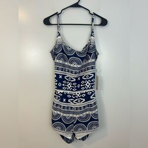 NWT Lagaci French Maverick Aztec Print Open Back Blue Strappy Romper Large